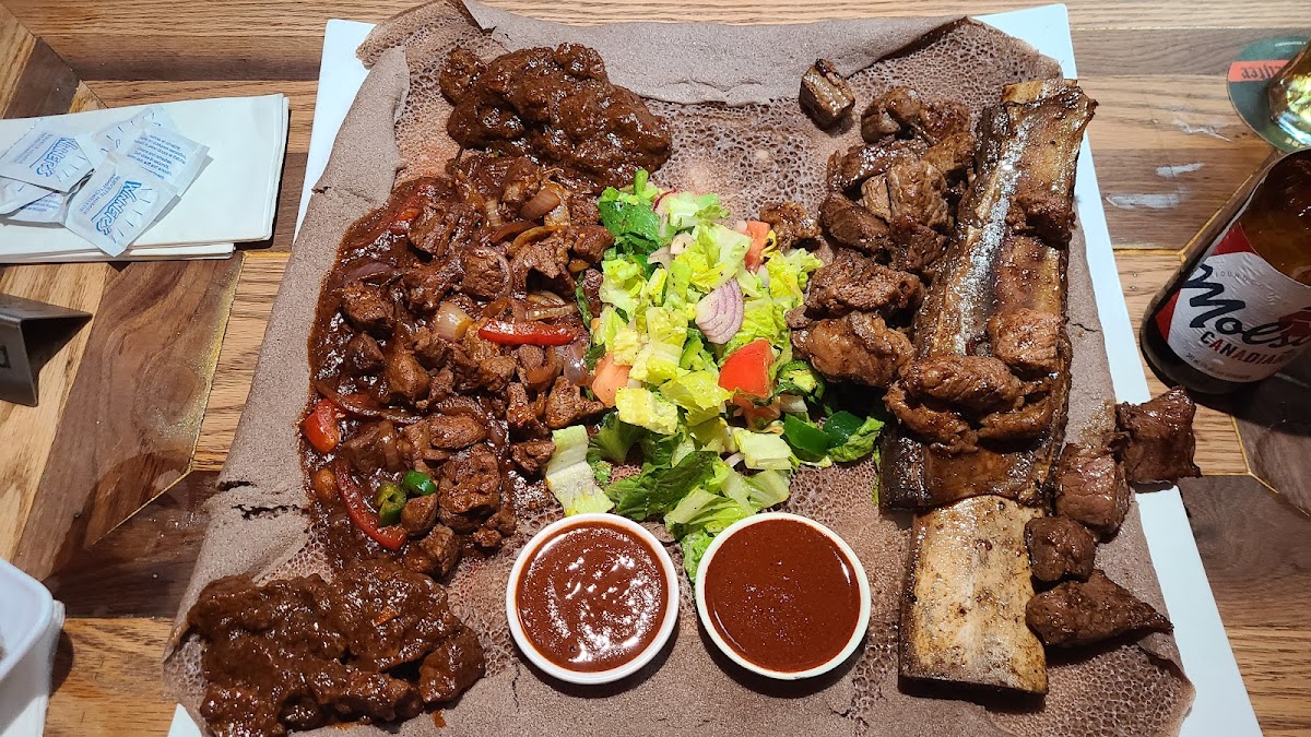 Tucked away on 1260 Danforth Ave in Toronto, Blue Nile Restaurant offers a cozy slice of Ethiopia right in the heart of the city. From the moment you step inside, the warm, inviting atmosphere makes you feel right at home, whether you're popping in for a casual meal or settling in with friends to explore the flavors of the menu. The restaurant’s casual vibe, paired with comfortable seating and subtle décor, creates a perfect spot for enjoying a relaxed lunch or dinner. Free parking nearby and Wi-Fi access make it even easier to linger over a meal or catch up with friends while savoring traditional dishes.
